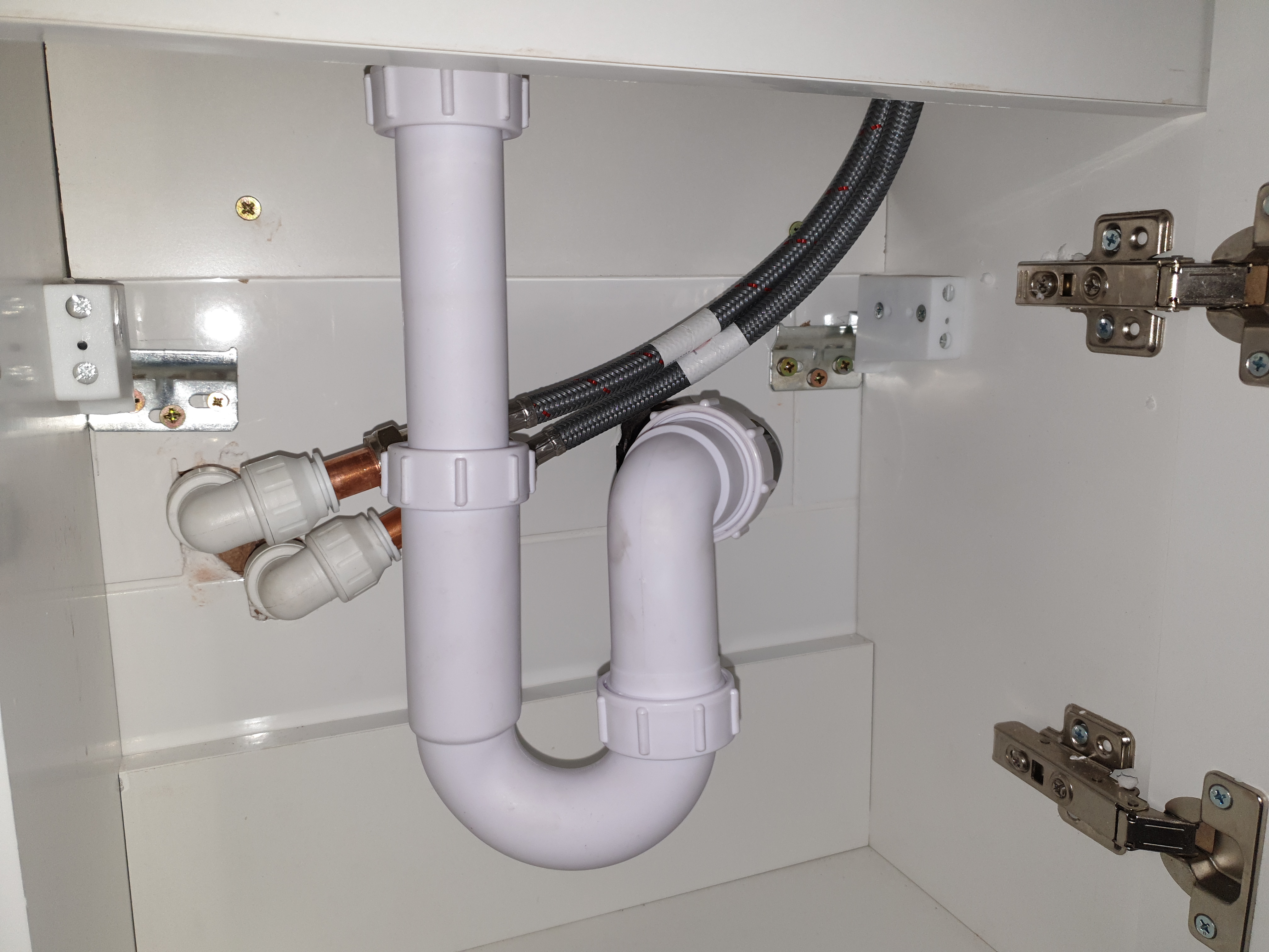The toilet and basin/pedestal are designed to conceal all of the plumbing which makes the bathroom look really neat.